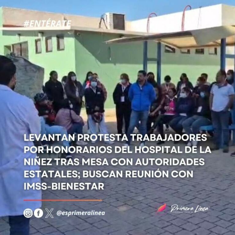 Levantan protesta trabajadores por honorarios del Hospital de la Niñez tras mesa con autoridades estatales; buscan reunión con IMSS-Bienestar Levantan protesta trabajadores por honorarios del Hospital de la Niñez tras mesa con autoridades estatales; buscan reunión con IMSS-Bienestar 17 enero, 2025