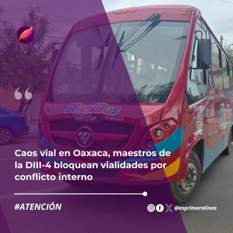 Caos vial en Oaxaca, maestros de la DIII-4 bloquean vialidades por conflicto interno La movilización es de trabajadores de oficinas del Instituto Estatal de Educación Pública de Oaxaca (IEEPO) y en planteles educativos,… 8 octubre, 2025