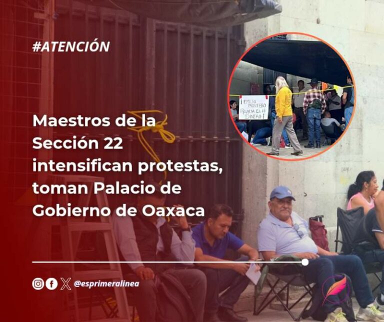 Maestros de la Sección 22 intensifican protestas, toman Palacio de Gobierno de Oaxaca Jefes de Sectores y Supervisores de la Sección 22 de la CNTE tomaron los accesos del Palacio de Gobierno y… 10 octubre, 2025