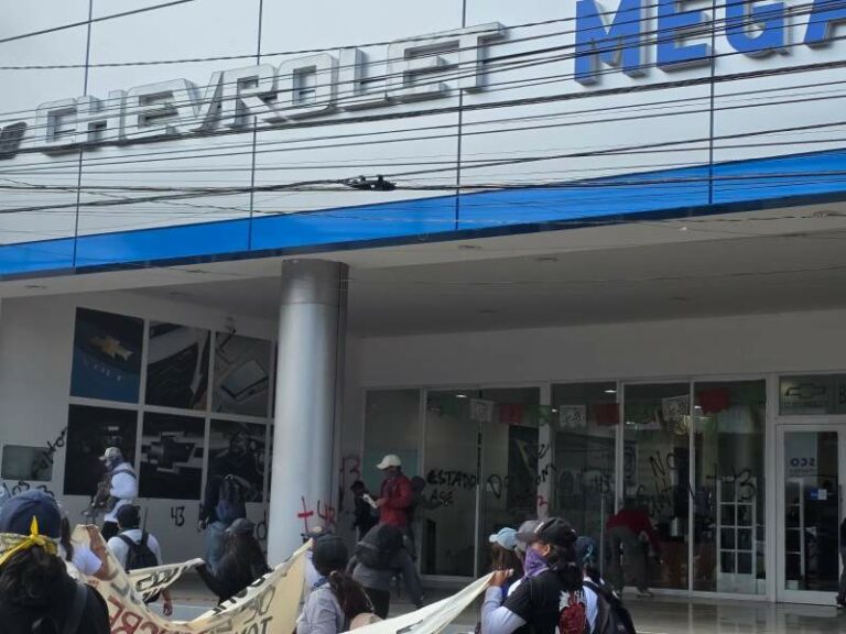 A 11 años de Ayotzinapa, marcha de normalistas en Oaxaca concluye con pintas a comercios y Palacio de Gobierno