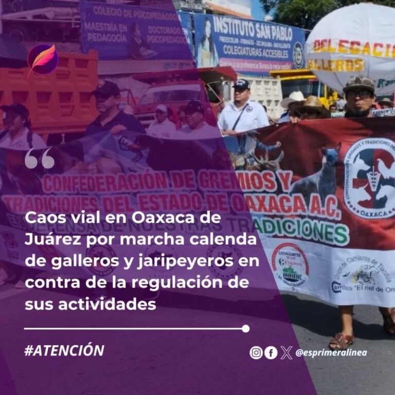 Caos vial en Oaxaca de Juárez por marcha calenda de galleros y jaripeyeros en contra de la regulación de sus actividades La manifestación busca presionar a las autoridades para que frenen una ley que busca regular y, posiblemente, prohibir sus actividades. 24 septiembre, 2025