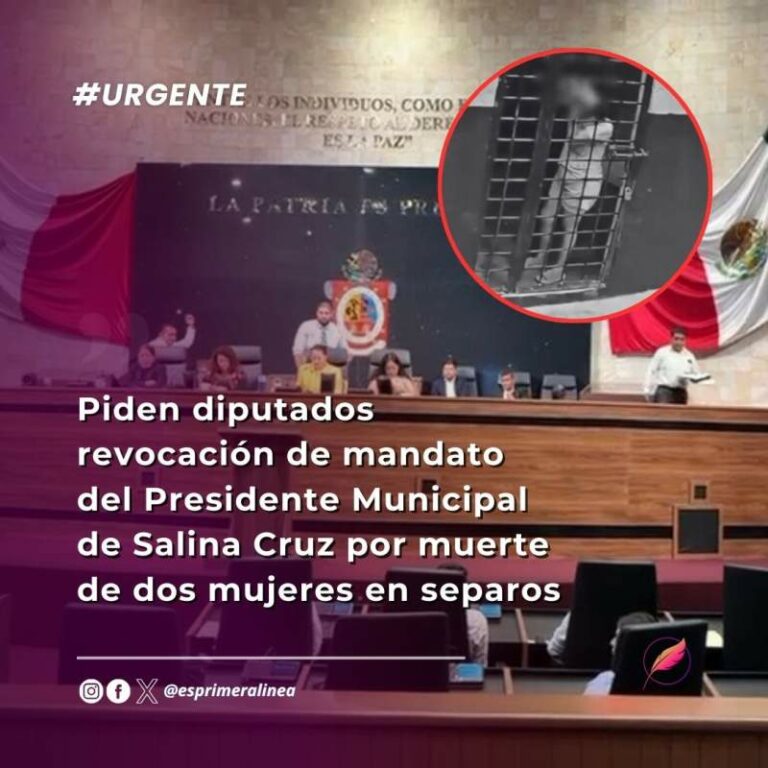 Piden diputados revocación de mandato del Presidente Municipal de Salina Cruz por muerte de dos mujeres en separos La exigencia de Rueda Gómez, que contó con el respaldo de la mayoría de los diputados de Morena, PVEM y… 23 septiembre, 2025
