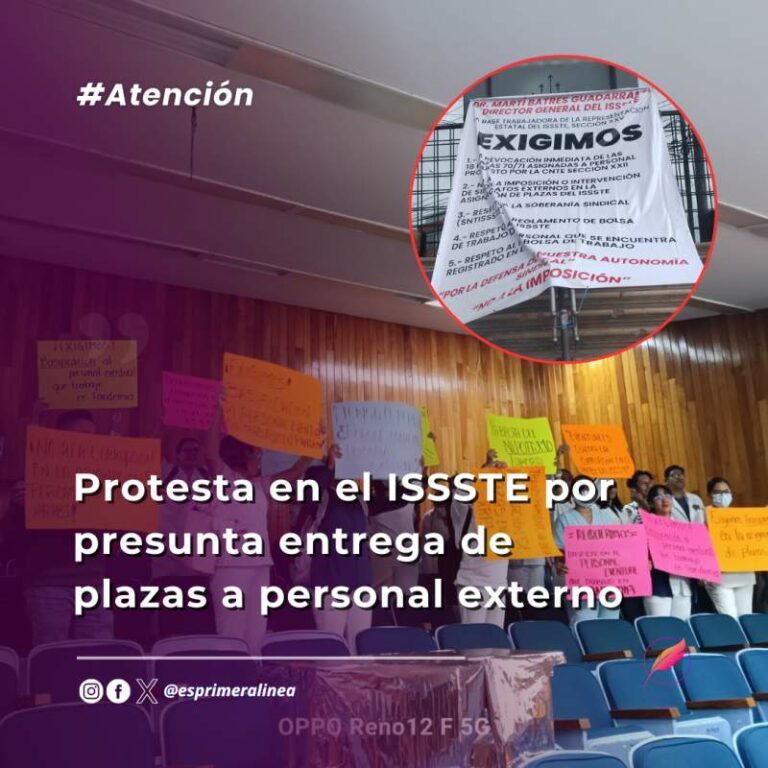 Protesta en el ISSSTE por presunta entrega de plazas a personal externo Los trabajadores denuncian que las plazas se entregaron a la Sección 22 del SNTE, lo que desplaza a quienes llevan… 11 septiembre, 2025