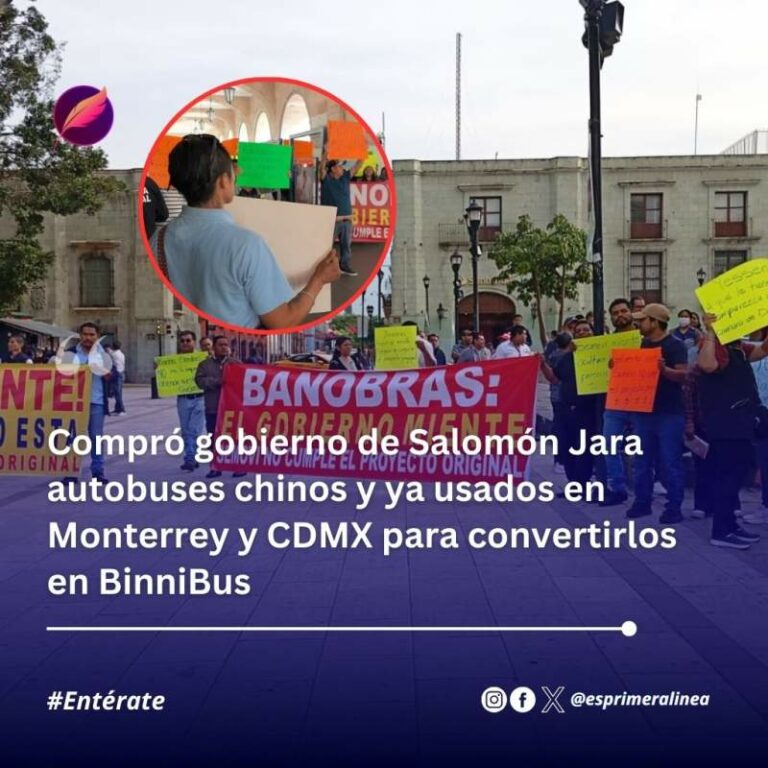 Compró gobierno de Salomón Jara autobuses chinos y ya usados en Monterrey y CDMX para convertirlos en BinniBus Con una protesta en la Alameda de León, trabajadores y concesionarios desglosaron sus inconformidades al señalar que fueron engañados y… 3 septiembre, 2025