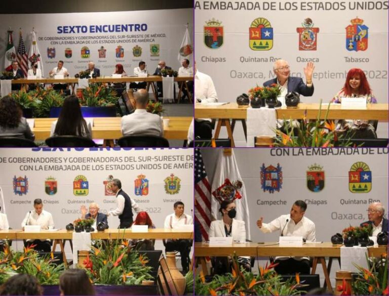 Realizan encuentro de gobernadores de la zona sur-sureste y la embajada de EUA En Oaxaca se llevó a cabo el Sexto Encuentro de gobernadores y gobernadoras del sur-sureste de México con la embajada… 20 septiembre, 2022