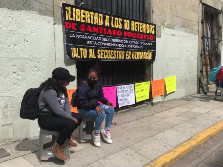 Se instalan en huelga de hambre para exigir liberación de habitantes de Santiago Progreso Familiares de los 10 retenidos de Santiago Progreso, Valle Nacional, instalaron una huelga de hambre a un costado del palacio… 21 septiembre, 2022