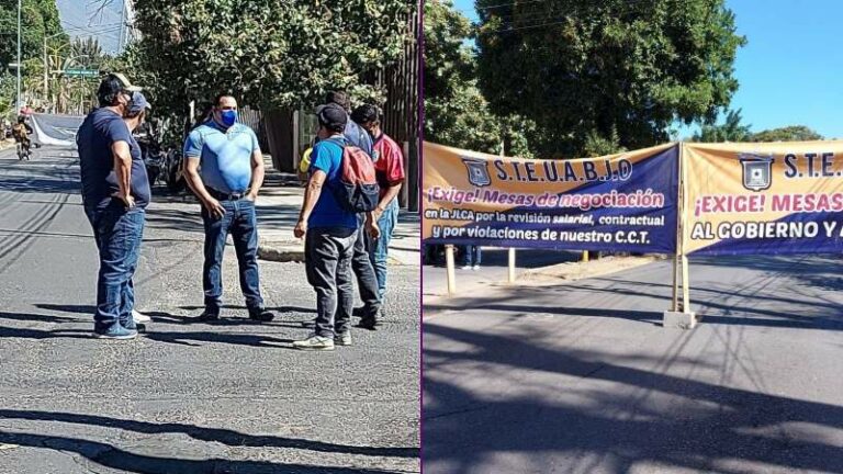 Steuabjo bloquea frente a la Junta de Conciliación, exigen atención a pliego de demandas El dirigente del Sindicato de Trabajadores y Empleados de la Universidad Autónoma Benito Juárez de Oaxaca (Steuabjo), Ariel Pérez Luján,… 2 marzo, 2022