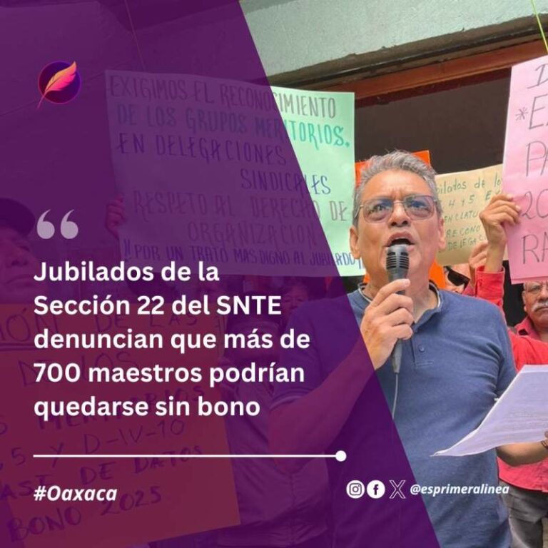 Jubilados de la Sección 22 del SNTE denuncian que más de 700 maestros podrían quedarse sin bono Jubilados de la Sección 22 del SNTE denuncian que más de 700 maestros podrían quedarse sin bono 6 agosto, 2025