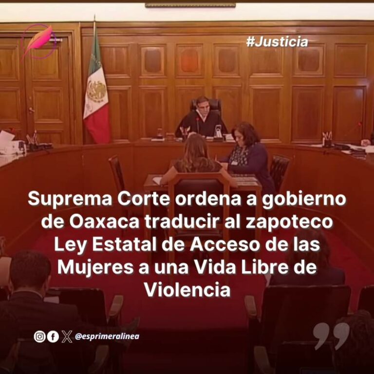 Suprema Corte ordena a gobierno de Oaxaca traducir al zapoteco Ley Estatal de Acceso de las Mujeres a una Vida Libre de Violencia La Suprema Corte de Justicia de la Nación (SCJN) ordenó a las autoridades de Oaxaca traducir al zapoteco la Ley… 6 agosto, 2025