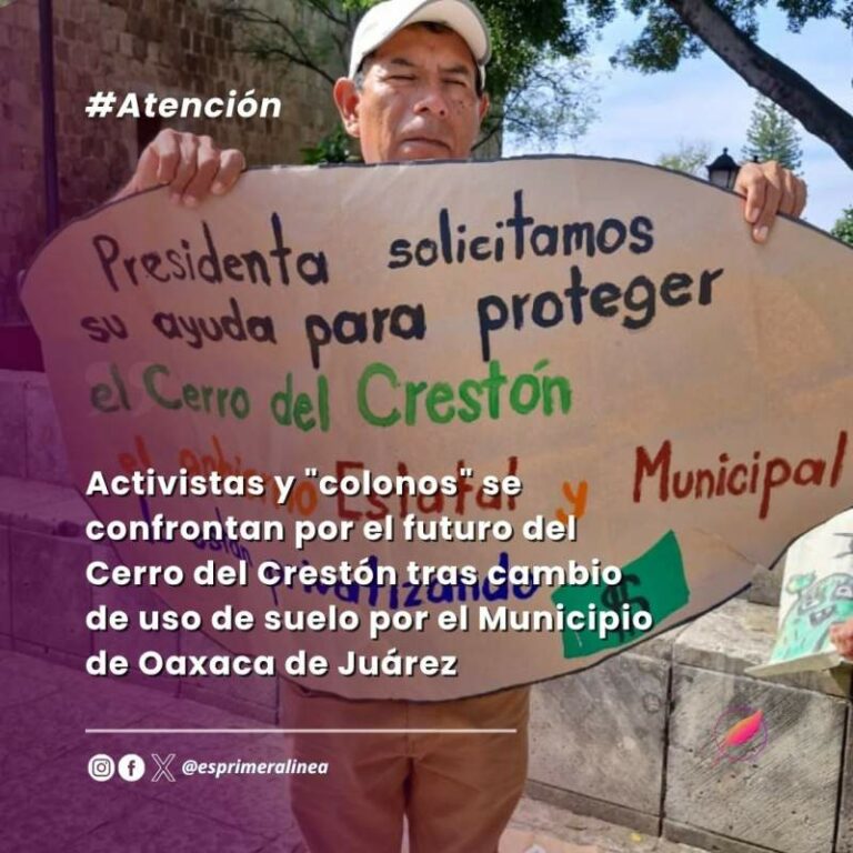 Activistas y “colonos” se confrontan por el futuro del Cerro del Crestón tras cambio de uso de suelo por el Municipio de Oaxaca de Juárez Activistas y "colonos" se confrontan por el futuro del Cerro del Crestón tras cambio de uso de suelo por el… 5 agosto, 2025