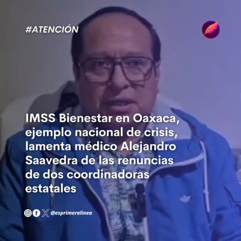 IMSS Bienestar en Oaxaca, ejemplo nacional de crisis, lamenta médico Alejandro Saavedra de las renuncias de dos coordinadoras estatales El médico Alejandro Saavedra López, despedido del IMSS Bienestar a comienzos de 2025 tras denunciar actos de corrupción, condenó que,… 4 agosto, 2025