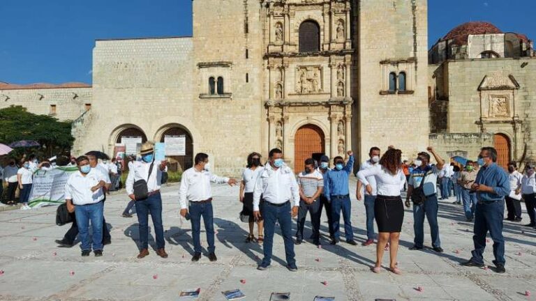 Trabajadores del Museo de Arte Contemporáneo de Oaxaca (MACO) e integrantes del Movimiento Único de Trabajadores Eventuales de los Servicios…