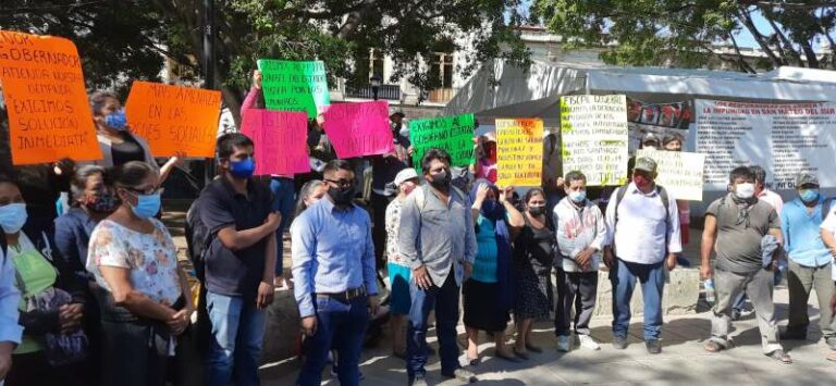 Desplazados de Río Santiago, desesperados, exigen a gobierno seguridad y reparación de daños por casas quemadas. Habitantes de Río Santiago se manifestaron esta mañana en el zócalo de la capital para exigir al gobierno de estado 17 mayo, 2021