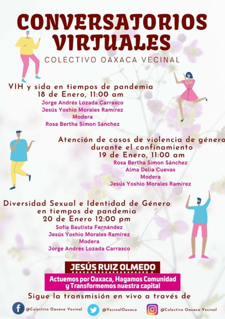 Arranca Colectivo Oaxaca Vecinal jornada de conversatorios virtuales Jesús Ruiz Olmedo informó que durante los días 18, 19 y 20 estarán proyectando conversatorios virtuales que servirán a las… 18 enero, 2021