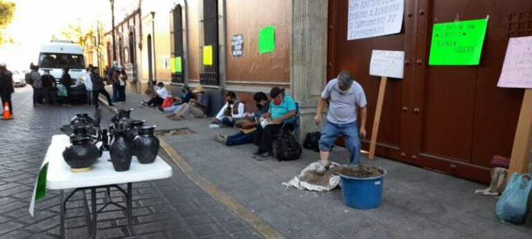 Protestan artesanos de Coyotepec exigen construcción de Mercado de Artesanías Con una protesta singular artesanos de San Bartolo Coyotepec protestaron afuera de Casa Oficial 21 diciembre, 2020