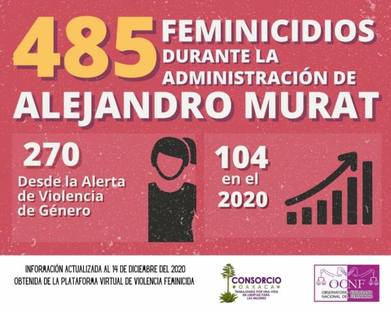 Continúa incremento de feminicidios en Oaxaca; contabilizan 485 asesinatos La violencia feminicida en Oaxaca no cesa. En lo que va de esta administración se han contabilizado al menos 485… 15 diciembre, 2020