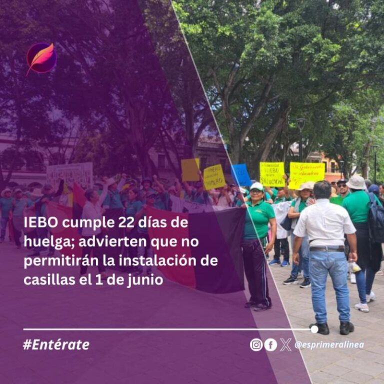 IEBO cumple 22 días de huelga; advierten que no permitirán la instalación de casillas el 1 de junio IEBO cumple 22 días de huelga; advierten que no permitirán la instalación de casillas el 1 de junio 27 mayo, 2025