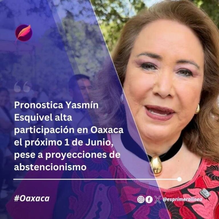 Pronostica Yasmín Esquivel alta participación en Oaxaca el próximo 1 de Junio, pese a proyecciones de abstencionismo Pronóstica Yasmín Esquivel alta participación en Oaxaca el próximo 1 de Junio, pese a proyecciones de abstencionismo 25 mayo, 2025