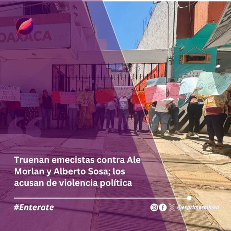 Truenan emecistas contra Ale Morlan y Alberto Sosa; los acusan de violencia política A esta protesta se sumó Ale Rivera Roldán, suplente de la diputada local, Alejandra García Morlan, a quien acusa de… 26 mayo, 2025