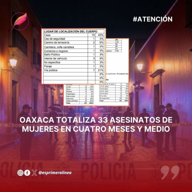 Oaxaca totaliza 33 asesinatos de mujeres en cuatro meses y medio El Grupo de Estudios sobre la Mujer “Rosario Castellanos” (Ges Mujer) contabilizó en Oaxaca un total de 33 asesinatos de… 19 mayo, 2025