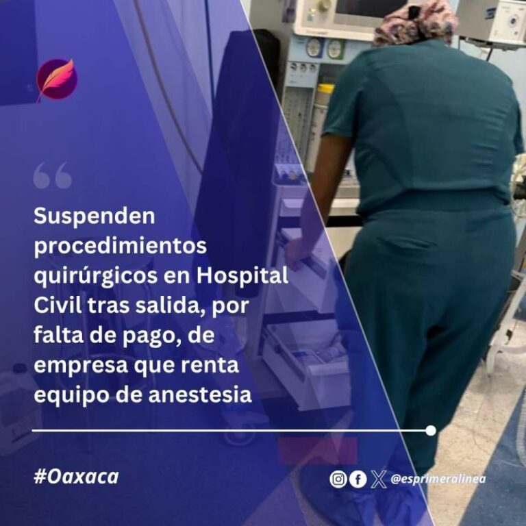 Suspenden procedimientos quirúrgicos en Hospital Civil tras salida, por falta de pago, de empresa que renta equipo de anestesia Personal de la empresa que subroga el equipo de anestesiología en el Hospital Civil “Aurelio Valdivieso” comenzó este día el… 19 mayo, 2025