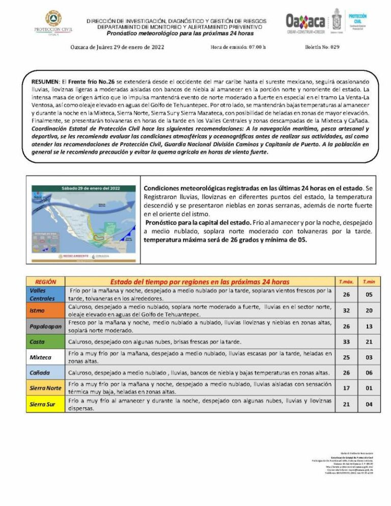 Se mantendrá evento de norte moderado a fuerte en la región del Istmo y bajas temperaturas en parte del estado: CEPCO A la navegación marítima, pesca artesanal y deportiva, se les recomienda evaluar las condiciones atmosféricas y oceanográficas antes de realizar… 29 enero, 2022