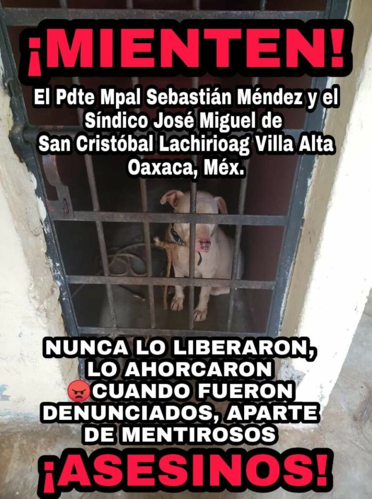 Asesinan a pitbull que fue encarcelado en San Cristóbal Lachirioag El pitbull de color blanco que fue encarcelado hace unos días en el Municipio de San Cristóbal Lachirioag, en la… 23 octubre, 2020