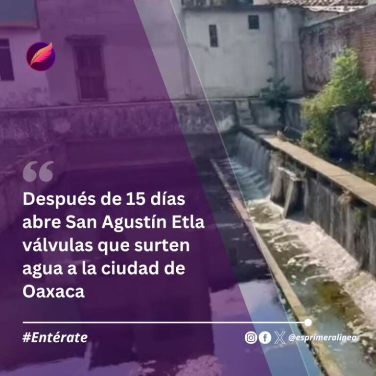 Después de 15 días abre San Agustín Etla válvulas que surten agua a la ciudad de Oaxaca Después de 15 días abre San Agustín Etla válvulas que surten agua a la ciudad de Oaxaca 11 mayo, 2025
