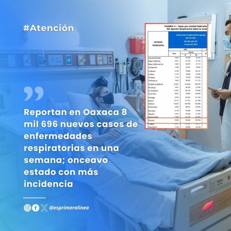 Reportan en Oaxaca 8 mil 696 nuevos casos de enfermedades respiratorias en una semana; onceavo estado con más incidencia Reportan en Oaxaca 8 mil 696 nuevos casos de enfermedades respiratorias en una semana; onceavo estado con más incidencia 8 mayo, 2025