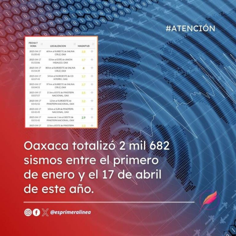 Oaxaca totalizó 2 mil 682 sismos entre el primero de enero y el 17 de abril de este año Oaxaca totalizó 2 mil 682 sismos entre el primero de enero y el 17 de abril de este año. 17 abril, 2025
