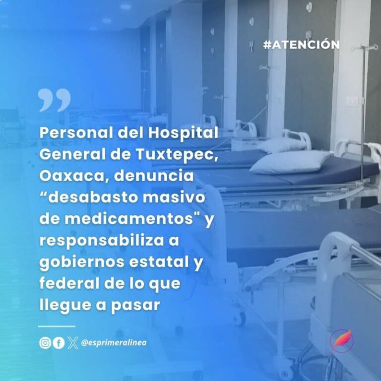 Personal del Hospital General de Tuxtepec, Oaxaca, denuncia “desabasto masivo de medicamentos” y responsabiliza a gobiernos estatal y federal de lo que llegue a pasar