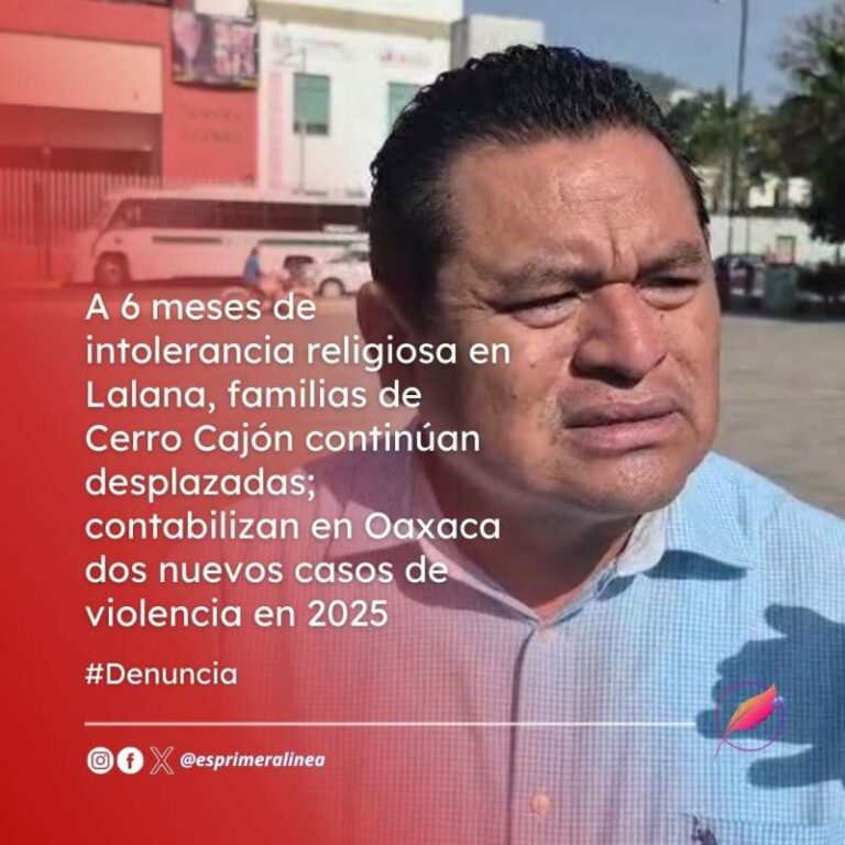 A 6 meses de intolerancia religiosa en Lalana, familias de Cerro Cajón continúan desplazadas; contabilizan en Oaxaca dos nuevos casos de violencia en 2025 A 6 meses de intolerancia religiosa en Lalana, familias de Cerro Cajón continúan desplazadas; contabilizan en Oaxaca dos nuevos casos… 31 marzo, 2025