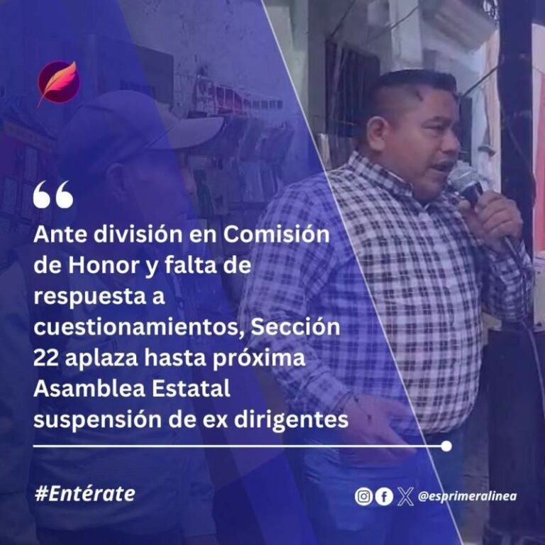 Ante división en Comisión de Honor y falta de respuesta a cuestionamientos, Sección 22 aplaza hasta próxima Asamblea Estatal suspensión de ex dirigentes Ante división en Comisión de Honor y falta de respuesta a cuestionamientos, Sección 22 aplaza hasta próxima Asamblea Estatal suspensión… 31 marzo, 2025