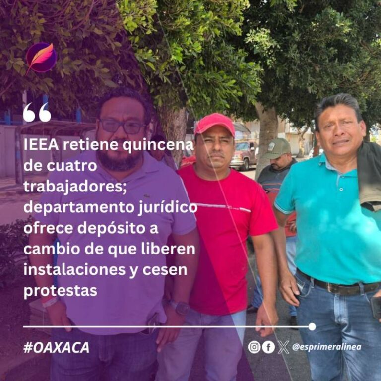 IEEA retiene quincena de cuatro trabajadores; departamento jurídico ofrece depósito a cambio de que liberen instalaciones y cesen protestas IEEA retiene quincena de cuatro trabajadores; departamento jurídico ofrece depósito a cambio de que liberen instalaciones y cesen protestas 31 marzo, 2025
