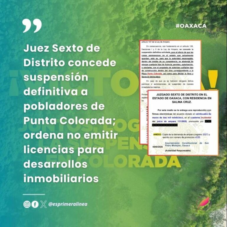 Juez Sexto de Distrito concede suspensión definitiva a pobladores de Punta Colorada; ordena no emitir licencias para desarrollos inmobiliarios