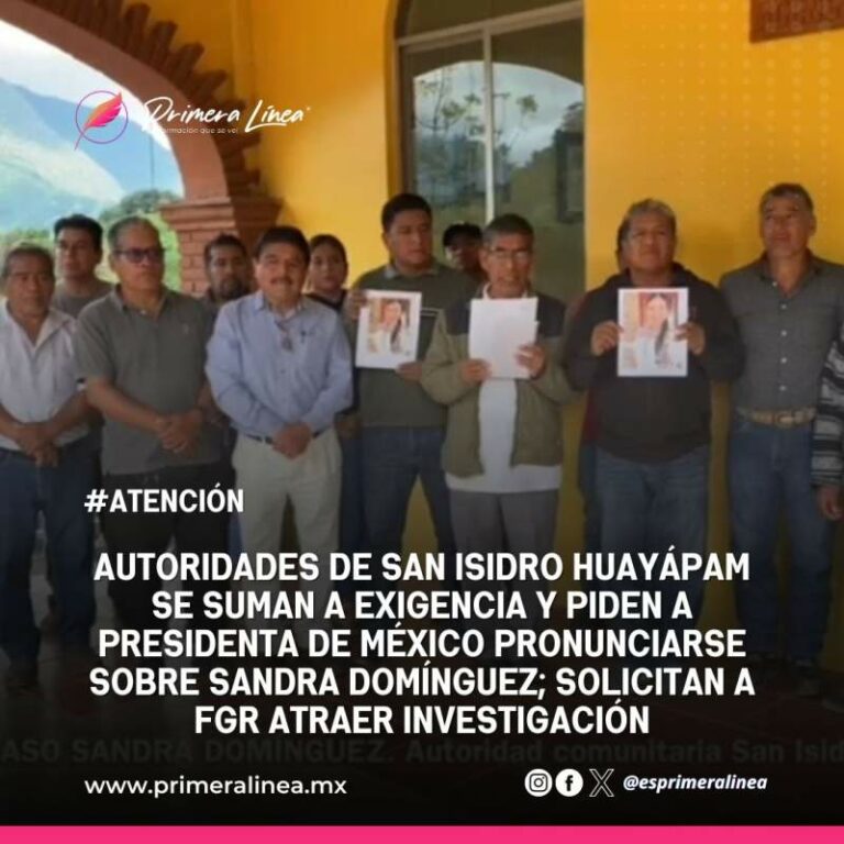 Autoridades de San Isidro Huayápam se suman a exigencia y piden a Presidenta de México pronunciarse sobre Sandra Domínguez; solicitan a FGR atraer investigación Autoridades de la agencia municipal de San Isidro Huayápam, perteneciente a Santa María Alotepec 14 octubre, 2024