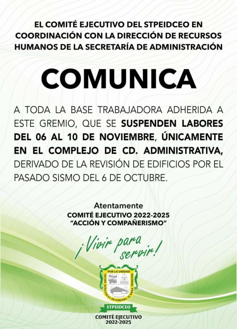A un mes de sismo, trabajadores sindicalizados suspenden actividades en Ciudad Administrativa por revisión de inmuebles