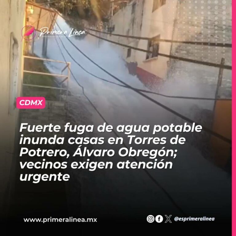 Fuerte fuga de agua potable inunda casas en Torres de Potrero, Álvaro Obregón; vecinos exigen atención urgente Vecinos de la colonia Torres de Potrero, en la alcaldía Álvaro Obregón, reportan una intensa fuga de agua potable desde… 14 abril, 2026