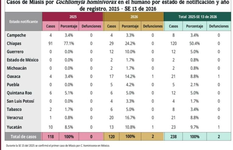 Registran en Oaxaca primera muerte de paciente por miasis humana de gusano barrenador El secretario de Salud de Oaxaca, Efrén Emmanuel Jarquín González, confirmó el fallecimiento de un paciente de 88 años a… 14 abril, 2026
