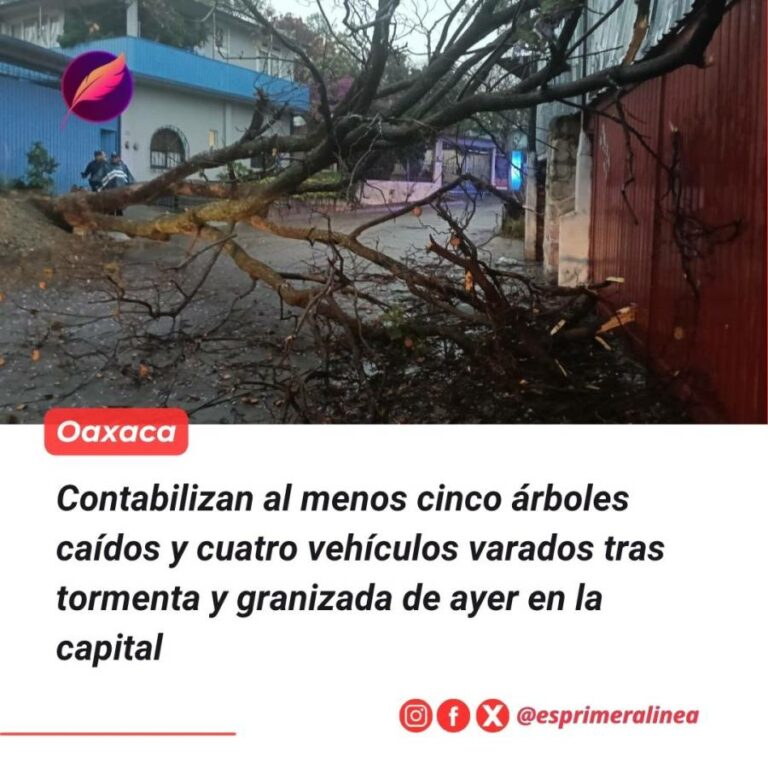Contabilizan al menos cinco árboles caídos y cuatro vehículos varados tras tormenta y granizada de ayer en la capital La intensa lluvia y granizada que afectó ayer por la tarde a la ciudad de Oaxaca y municipios cercanos dejó… 10 abril, 2026