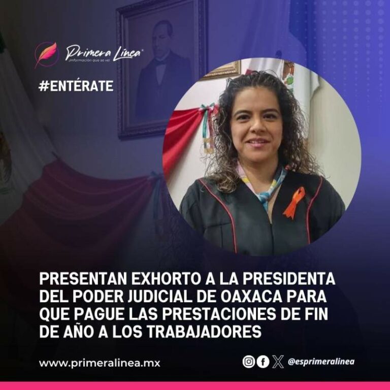 Presentan exhorto a la presidenta del Poder Judicial de Oaxaca para que pague las prestaciones de fin de año a los trabajadores Presentan exhorto a la presidenta del Poder Judicial de Oaxaca para que pague las prestaciones de fin de año a… 7 enero, 2025