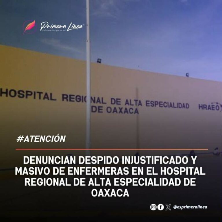Denuncian despido injustificado y masivo de enfermeras en el Hospital Regional de Alta Especialidad de Oaxaca En 2024, alrededor de 120 enfermeras fueron contratadas por el IMSS Bienestar para trabajar en el Hospital de Regional de… 5 enero, 2025