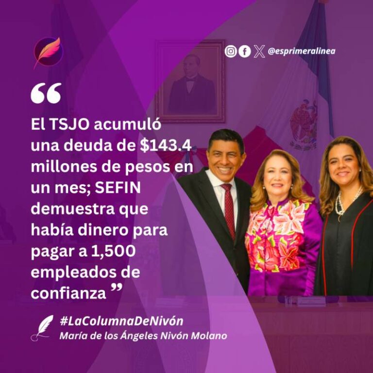 El Tribunal Superior de Justicia de Oaxaca acumuló una deuda de $143.4 millones de pesos en un mes; SEFIN demuestra que había dinero para pagar a 1,500 empleados de confianza La propia magistrada-presidenta Berenice Ramírez Jiménez firmó una solicitud de acuerdo de ministración por casi $90 millones de pesos a… 6 enero, 2025