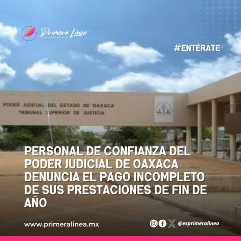 Personal de confianza del Poder Judicial de Oaxaca denuncia el pago incompleto de sus prestaciones de fin de año Personal de confianza del Poder Judicial de Oaxaca denuncia el pago incompleto de sus prestaciones de fin de año 29 diciembre, 2024