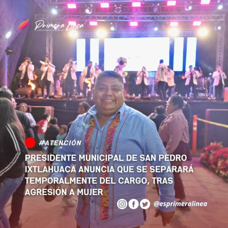 Presidente municipal de San Pedro Ixtlahuaca anuncia que se separará temporalmente del cargo, tras agresión a mujer El presidente municipal de San Pedro Ixtlahuaca, Roberto Pérez Delgado, anunció que se separará de manera temporal de su cargo,… 19 diciembre, 2024