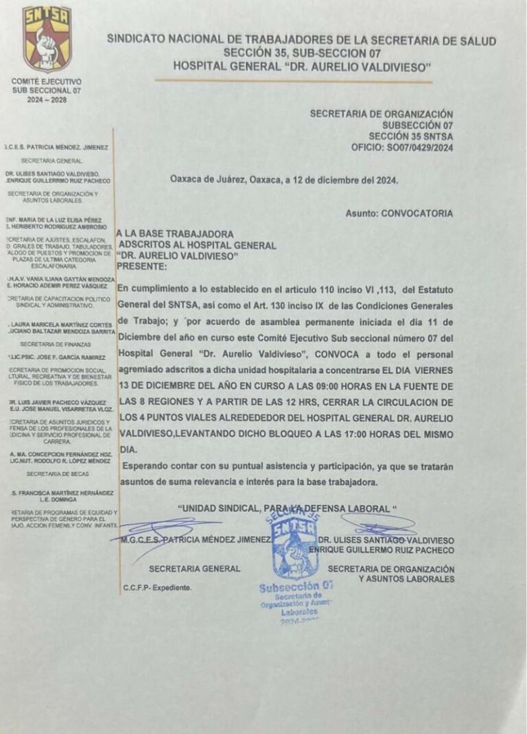 IMSS Bienestar se compromete a pagar adeudos con trabajadores de Oaxaca el 16 de diciembre; sindicato responde que paro continuará hasta esa fecha