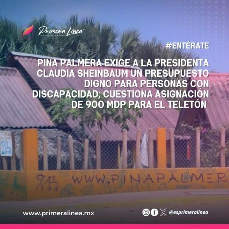 Piña Palmera exige a la presidenta Claudia Sheinbaum un presupuesto digno para personas con discapacidad; cuestiona asignación de 900 mdp para el Teletón La organización Piña Palmera cuestionó la asignación de 900 millones de pesos del gobierno de la presidenta Claudia Sheinbaum Pardo… 6 diciembre, 2024
