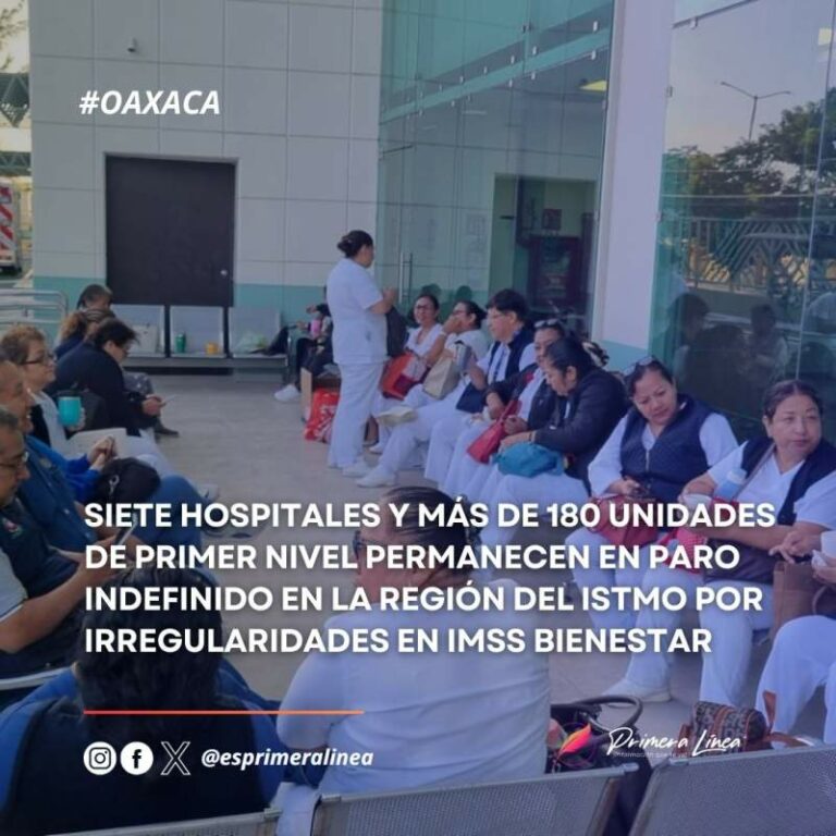 Siete hospitales y más de 180 unidades de primer nivel permanecen en paro indefinido en la región del Istmo por irregularidades en IMSS Bienestar Un total de siete nosocomios funcionando de manera restringida y más de 180 unidades de primer nivel (centros de salud)… 3 diciembre, 2024