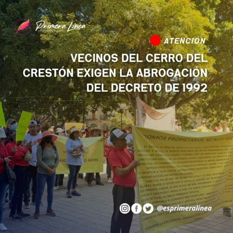 Vecinos del Cerro del Crestón exigen la abrogación del decreto de 1992 Vecinos de diferentes colonias y agencias de la ciudad de Oaxaca de Juárez marcharon para exigir la abrogación del decreto… 1 diciembre, 2024