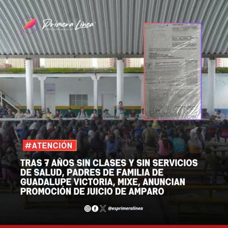 Tras 7 años sin clases y sin servicios de salud, padres de familia de Guadalupe Victoria, Mixe, anuncian promoción de juicio de amparo Tras 7 años sin clases y sin servicios de salud, padres de familia de Guadalupe Victoria, Mixe, anuncian promoción de… 23 noviembre, 2024